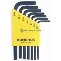 JUEGO DE 7 LLAVES HEXAGONALES CORTAS RECTAS FRACCIONALES. 5/64″ A 3/16″. BONDHUS 12245