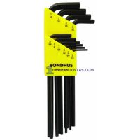 JUEGO DE 9 LLAVES HEXAGONALES LARGAS RECTAS MÉTRICAS. 1.5 A 10MM. BONDHUS 12195