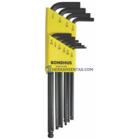 JUEGO DE 9 LLAVES HEXAGONALES EXTRA LARGAS PUNTA DE BOLA MÉTRICAS. 1.5 A 10MM. BONDHUS 16099