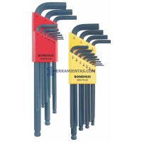 DOBLE PACK DE JUEGOS DE LLAVES HEXAGONALES PUNTA DE BOLA EN “L” Y NAVAJA MÉTRICAS. BONDHUS 14187