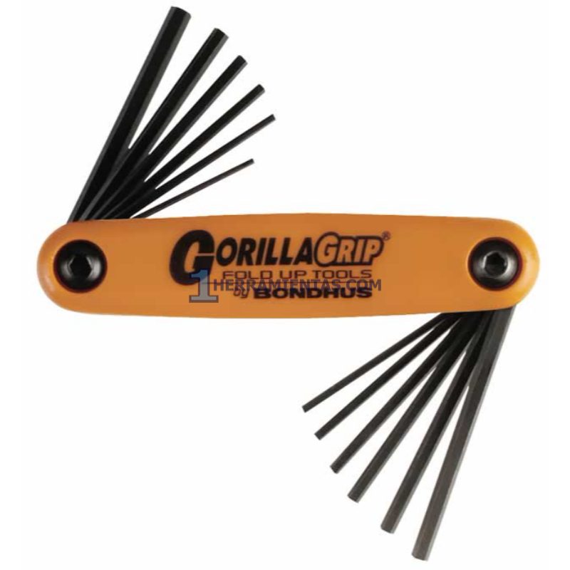 JUEGO DE 12 LLAVES HEXAGONALES RECTAS TIPO NAVAJA “GORILLA GRIP” FRACCIONAL Y MILIMÉTRICO. BONDHUS 12550