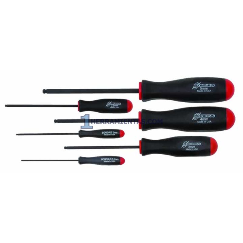 JUEGO DE 6 DESARMADORES HEXAGONALES PUNTA DE BOLA MÉTRICOS 1.5MM A 5MM. BONDHUS 10686