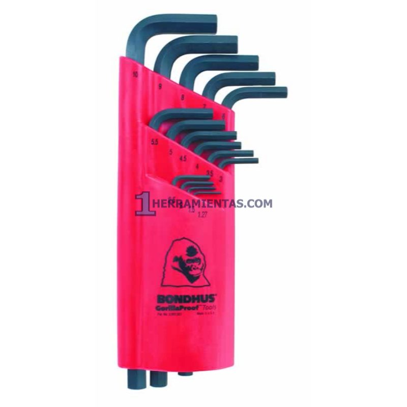 JUEGO DE 9 LLAVES HEXAGONALES LARGAS RECTAS MÉTRICAS. 1.5 A 10MM. BONDHUS 12195